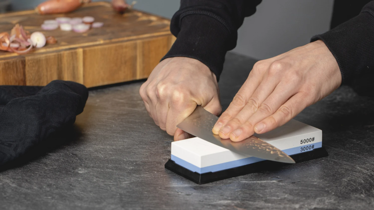 Bij het gebruiken van een wetsteen is het belangrijk dat je veilig werkt en dat de steen niet verschuift tijdens het slijpen, leg de steen hiervoor in de meegeleverde anti-slip houder. Daarnaast is het belangrijk dat je altijd werkt in oplopende korrelgrootte en dat je de messen van top tot teen over de steen slijpt. Voor een uitgebreide gebruiksaanwijzing kan je de keuzegids: ‘Hoe gebruik ik een wetsteen?’ lezen.