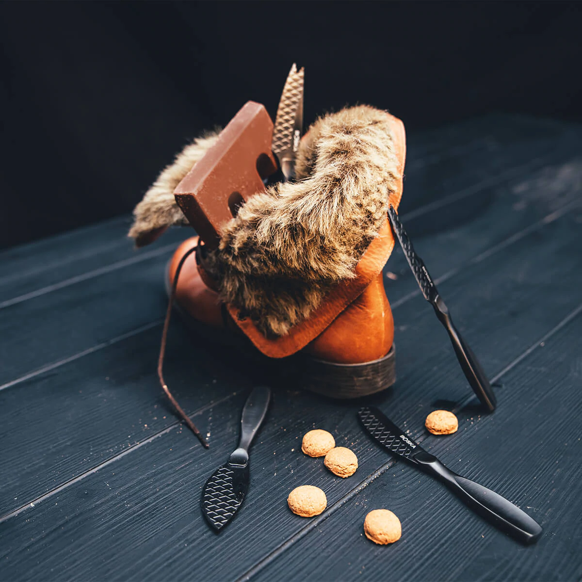 | Inhoud doos | 4 kaasmessen: zacht, halfzacht, halfhard en hard |
