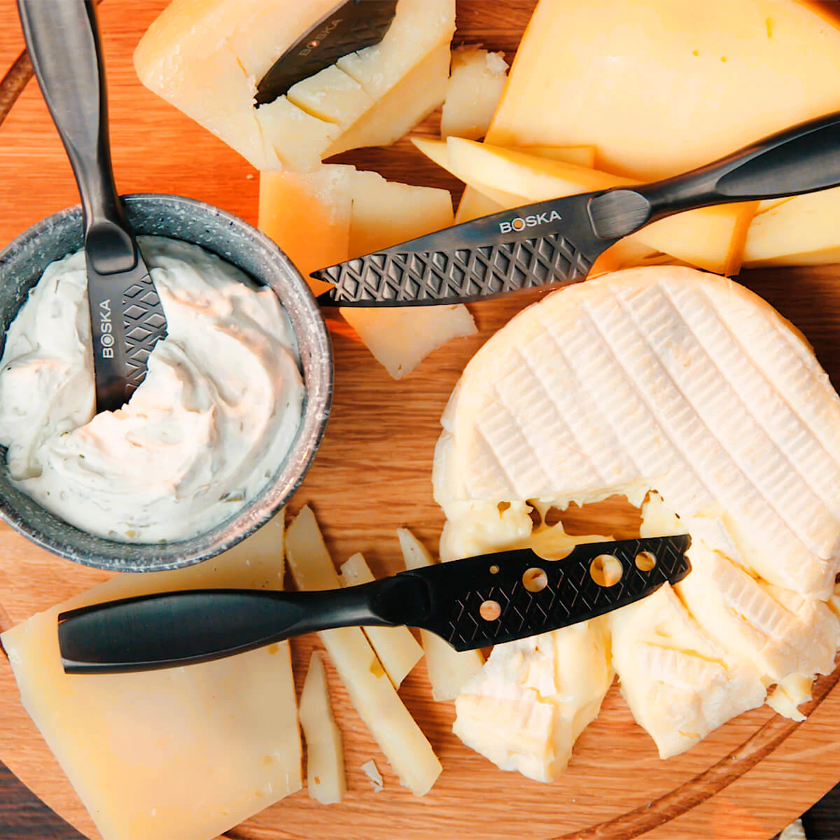 De Monaco+ collectie is echt het vlaggenschip van de Boska collecties. Boska heeft na 120 jaar ervaring alle eigenschappen die kaas snijden zo fijn maken in deze collectie verwerkt. Met het uitgebreide aanbod snijd je elke soort kaas met zijn eigen perfect geoptimaliseerde mes. Maar het blijft niet alleen bij kaasmessen. De collectie heeft ook meerdere keukenmessen om zo al het snijwerk in jouw keuken makkelijker te maken. Het kenmerkende wafelpatroon en de non-stickbehandeling zorgen voor minder weerstand tijdens het snijden of schaven. Benieuwd naar de gehele Monaco+ collectie? Klik dan hier.