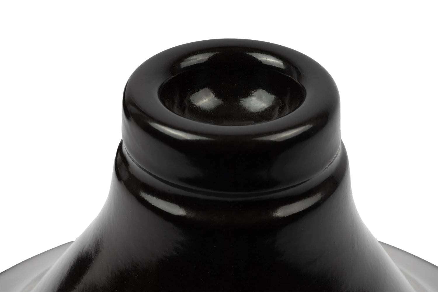 De Cookinglife Tajine, gemaakt van aardewerk, is een traditioneel Marokkaans kookgerei. Deze tajine heeft een diameter van 32 cm en een inhoud van 3 liter, ideaal voor het bereiden van stoofgerechten. Hij is geschikt voor gebruik op gas, elektrisch, halogeen en keramische warmtebronnen, maar niet op inductie. Handgemaakt in Spanje, het zwarte design brengt een authentieke sfeer in elke keuken.