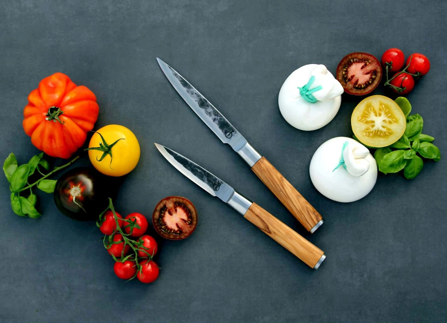 Bij het ontwerpen van de Forged Olive serie was het samenvoegen van sprekende kleuren en materialen het uitgangspunt. De combinatie van het gehamerde lemmet, de strak afgewerkte krop en het natuurlijke olijfhouten heft, maakt dit tot een prachtige serie. Een regelrechte blikvanger.