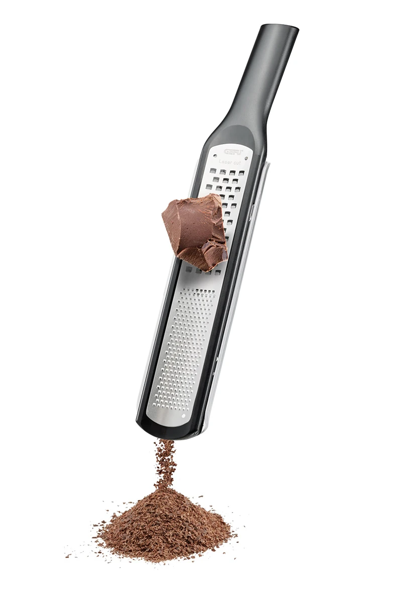 De Gefu Rasp Fijn & Grof Rafino is erg multifunctioneel. Deze rasp is namelijk zowel fijn als grof, doordat het blad in twee delen is opgesplitst. Aan de bovenkant is rasp erg grof, waardoor je bijna krullen eruit krijgt, en aan de onderkant is het juist een heel erg fijne rasp voor bijvoorbeeld chocolade of gember.