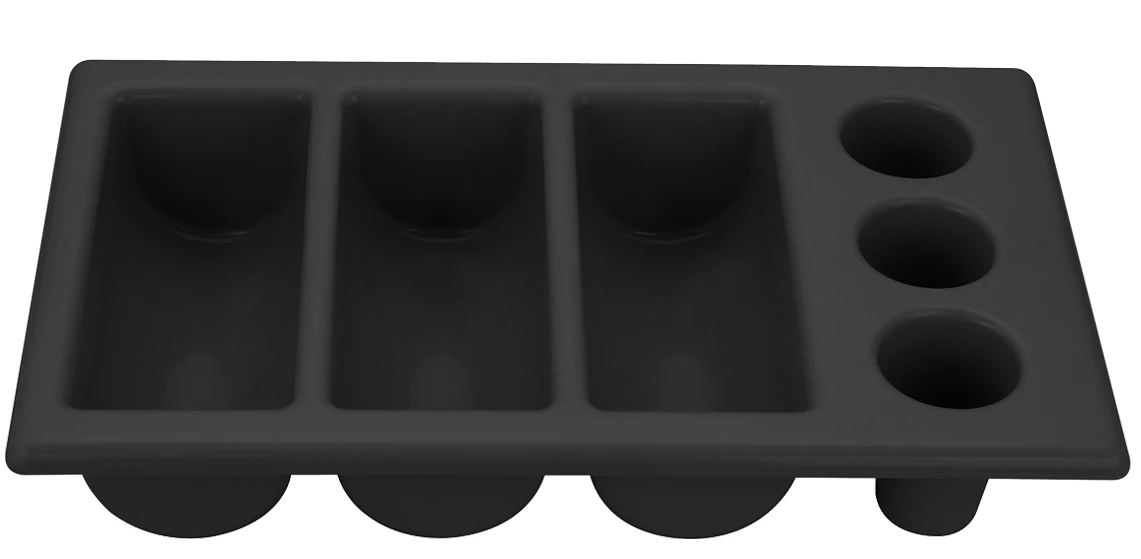 Deze bestekbak van Hendi heeft 3 ronde vakjes waarmee u uw (klein) bestek rechtop kan zetten zodat deze sneller droogt. Uiteraard kunt u uw bestek ook in één van de drie liggende vakjes bewaren. De bestekbak voldoet aan de Gastronorm waarmee deze ook geschikt is voor de horeca.