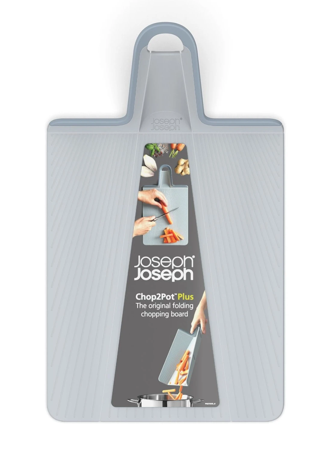 Chop2PotMet de prijswinnende opvouwbare snijplank uit de Joseph Joseph Chop2Pot collectie kun je ingrediënten snijden en vervolgens in een pan doen zonder het risico te lopen dat ze onderweg vallen. Door de scharnier-techniek die in de snijplank is verwerkt kan van de snijplank eenvoudig een soort schep gemaakt worden, waardoor je het gesneden voedsel gericht en makkelijk van de snijplank af kunt schuiven.