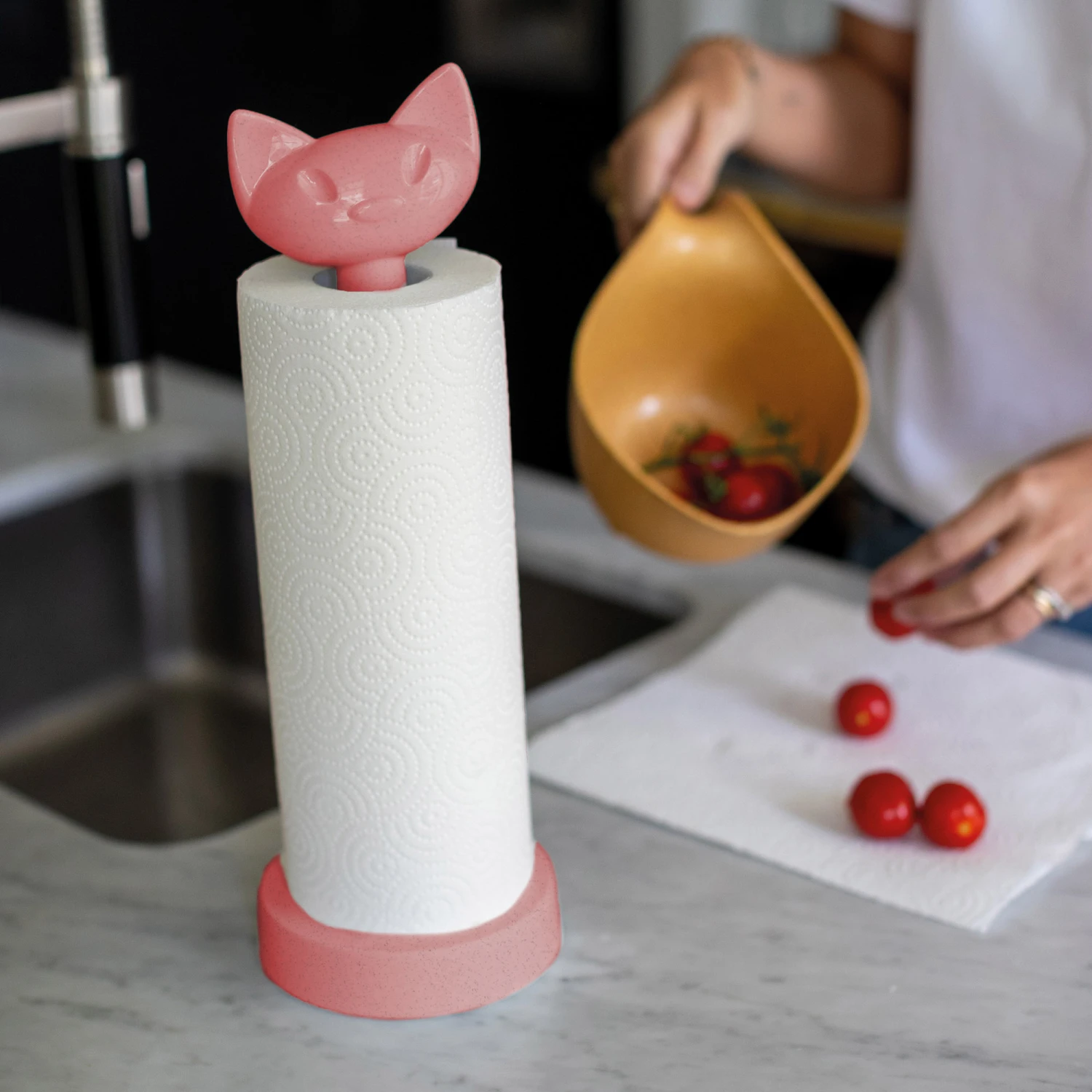 De Koziol Keukenrolhouder Miaou Grijs is een ideale keukenrolhouder voor elke kattenliefhebber. De keukenrolhouder heeft een zware voet, maar toch een licht gewicht, waardoor de houder stevig blijft staan en makkelijk te verplaatsen is. De rol is makkelijk te vervangen, je hoeft alleen maar het kattenhoofd eruit te halen en je voegt zo een nieuwe rol toe. De rol is ook nog duurzaam, hij is namelijk gemaakt van Bio-circulair, een kunststof op basis van houtvezel.