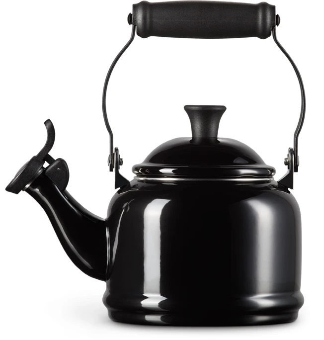 Met deze Le Creuset Fluitketel Demi in het zwart introduceer je een vleugje vintage stijl. De fluitketel heeft een inhoud van 1.1 liter en heeft een binnen- en buitenkant van geëmailleerd carbon staal. Hij is sterk, stijlvol en is gemaakt om lang mee te gaan. Als het water klaar is, klinkt er een charmant fluitje!