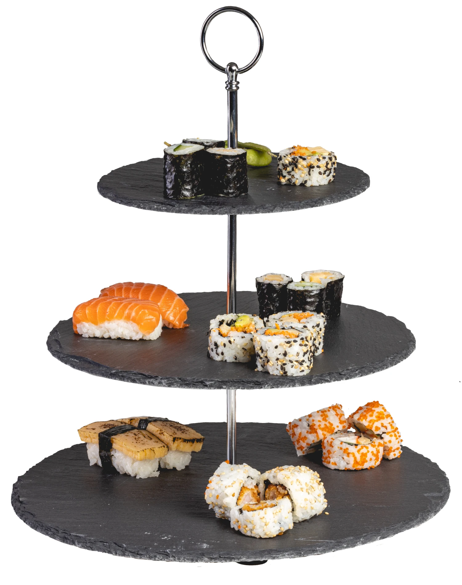 Met deze drie laags etagère serveer jij je hapjes altijd in stijl. De etagère is gemaakt van leisteen, een natuurproduct waardoor alle etagères hun eigen unieke patroon hebben. Dankzij de drie lagen heb je meer dan voldoende ruimte om veel hapjes tegelijkertijd te serveren.
