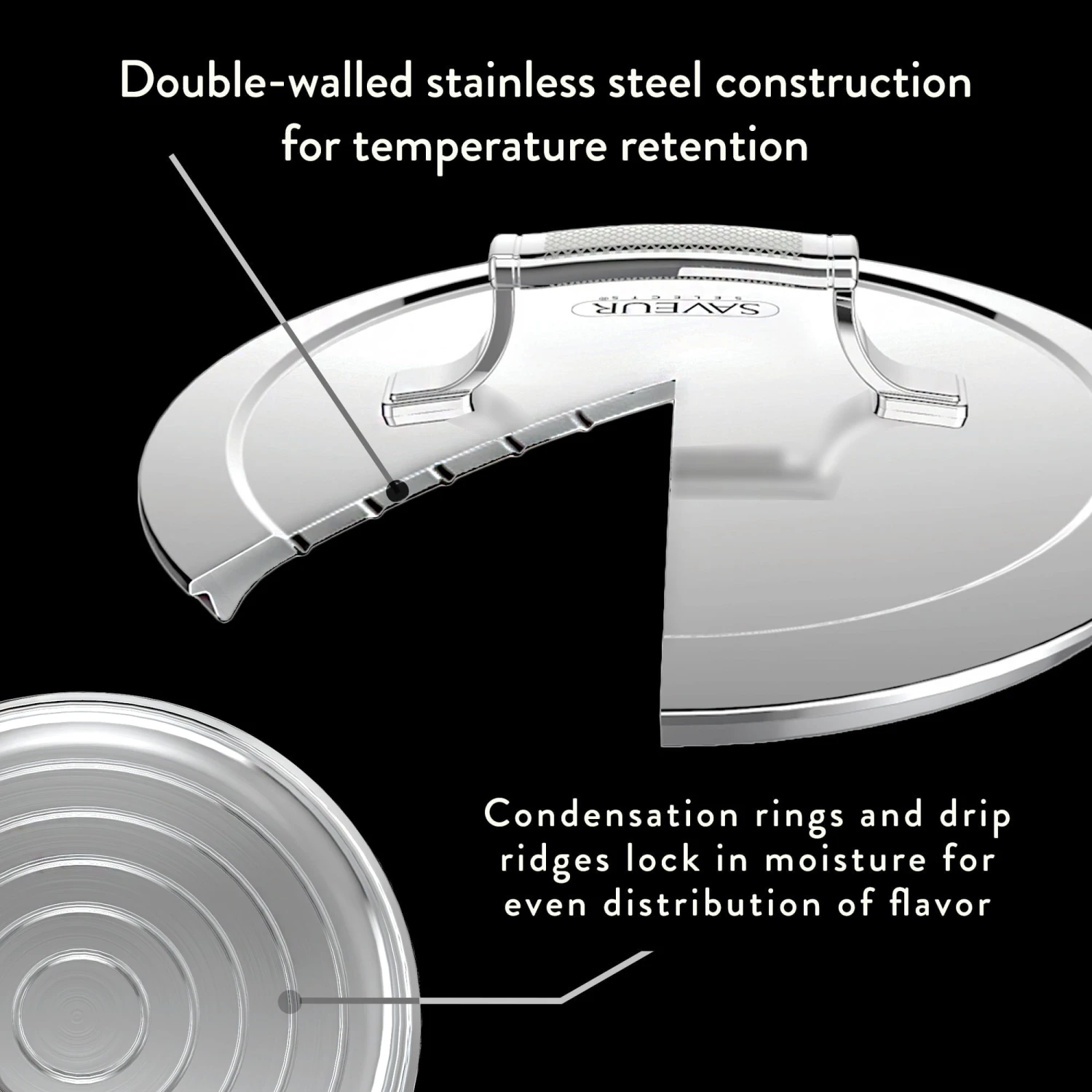 De geëmailleerde gietijzeren Braadpan behoudt en verdeelt warmte gelijkmatig. Het lichtgewicht, roestvrijstalen deksel van deze Braadpan presteert beter dan andere zware gietijzeren deksels, met verbeterde temperatuurbehoud en minder verdamping.
