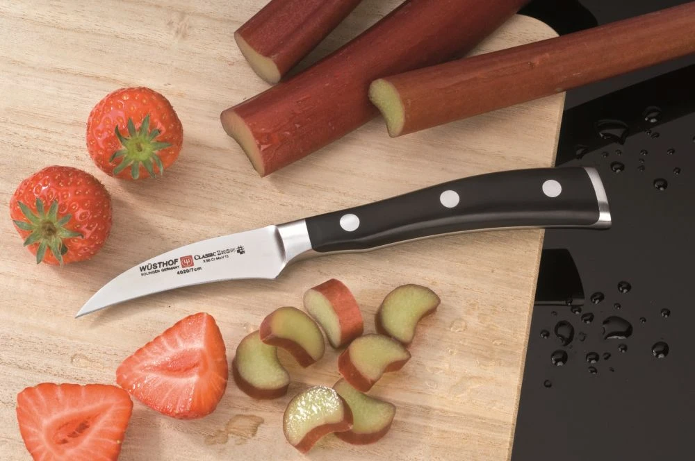 Appels uitboren, komkommer in fijne plakjes snijden en paprika blokjes snijden. Deze snij taken gaan zuiver en probleemloos met het groentemes van Wusthof. Het groentemes met het korte lemmet van 7 cm ligt vast in de hand. Het mes heeft een gladde snijrand en is ideaal voor het decoratief snijden van groente en fruit.